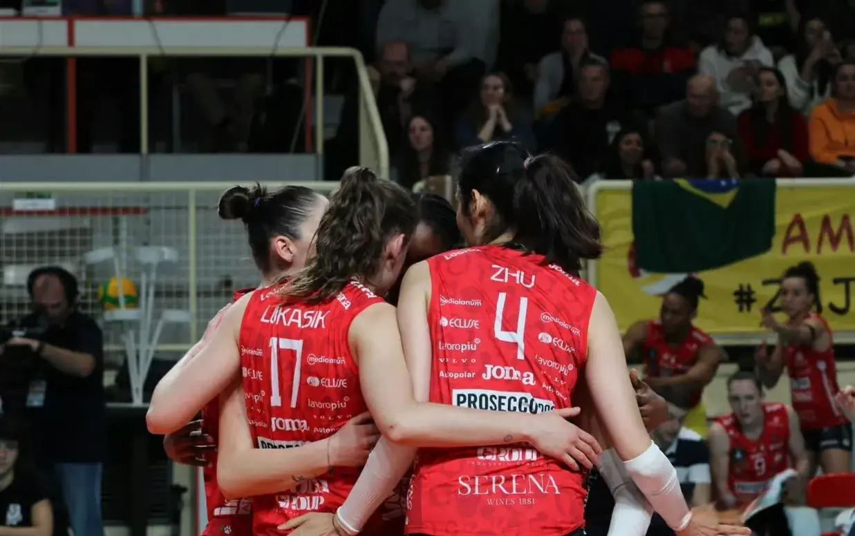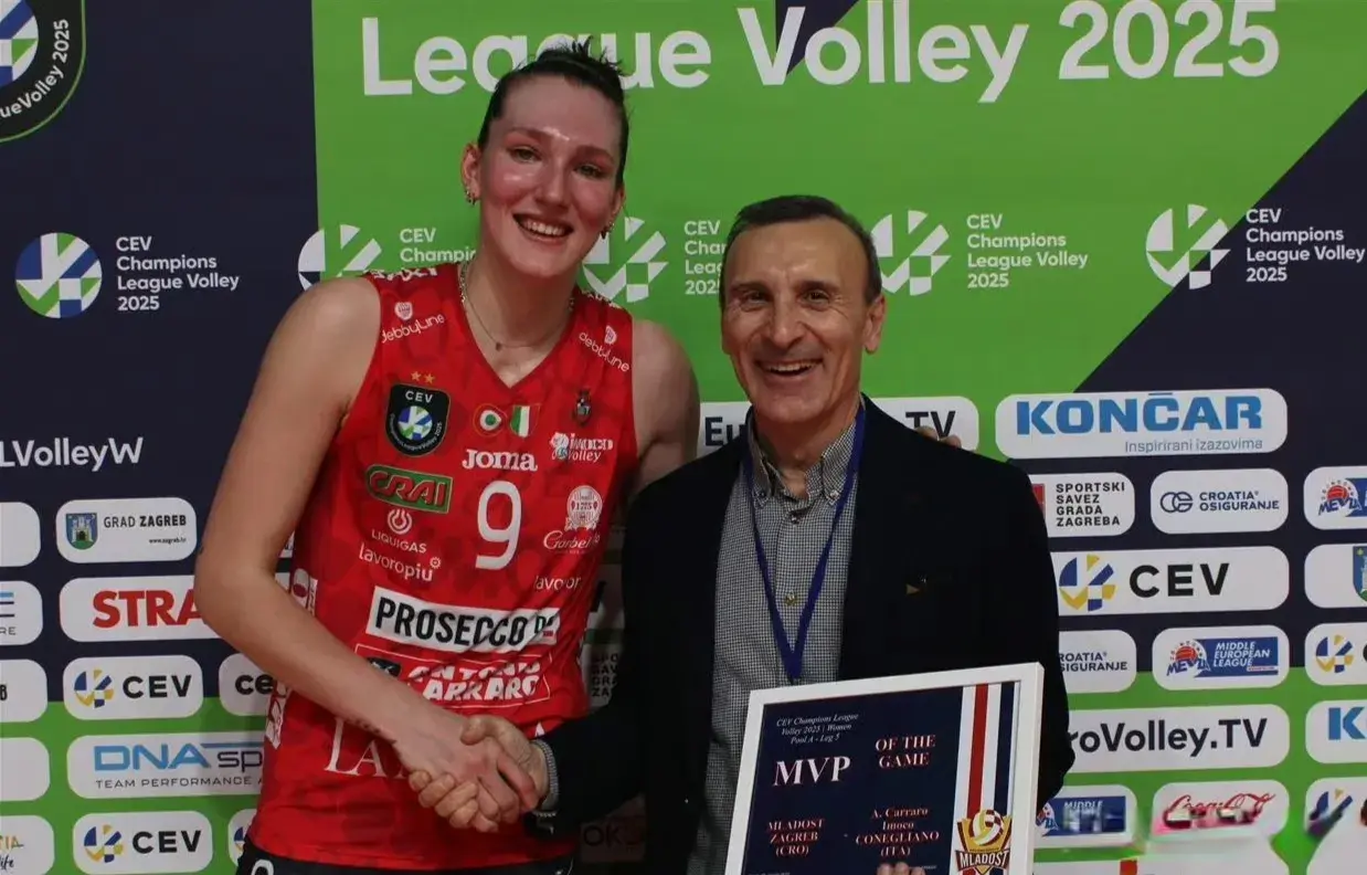 2024-2025赛季女排欧冠第四轮正赛小组赛第五轮A组,意大利科内利亚诺3-0克罗地亚萨格勒布青年(25-16 25-16 25-23),取得五连胜。